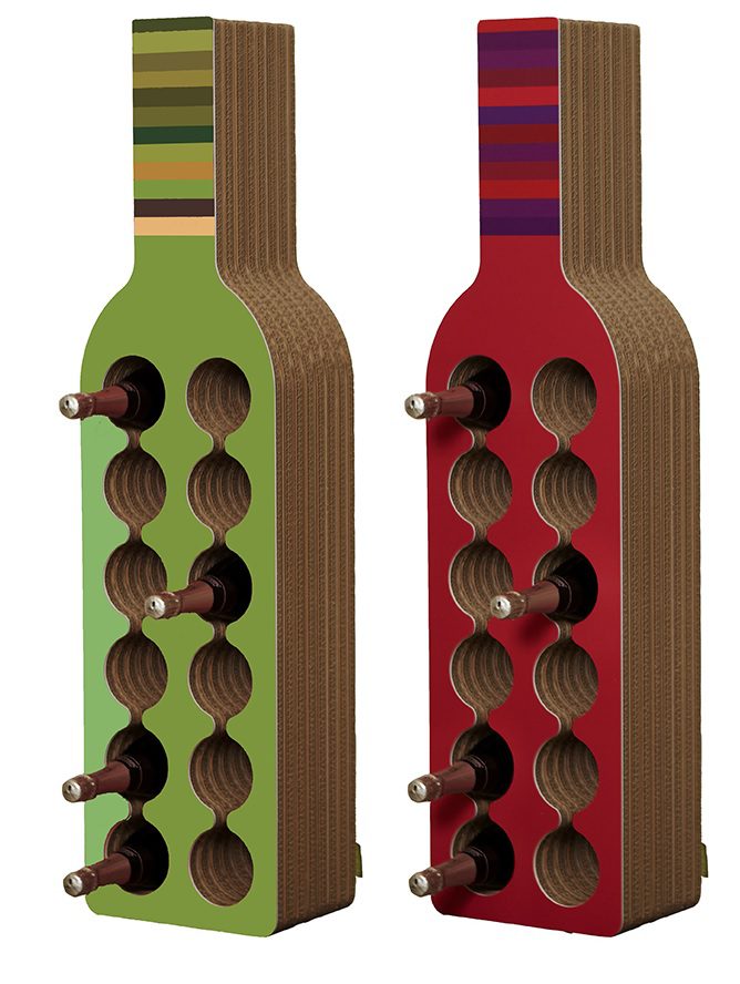 ¿Qué mejor manera de almacenar su colección de botellas de vino que en un estante que parece una botella de vino gigante? Suena muy divertido y lo es. El botellero Minibodega está fabricado en cartón y tiene capacidad para 12 botellas. Es una pieza de acento maravillosamente alegre para decoraciones modernas y contemporáneas.