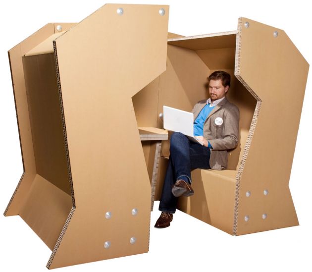 Cellulose Meeting Pod está diseñado para oficinas y es una especie de estructura improvisada que se puede utilizar como un espacio de reunión privado o simplemente como un lugar donde puede estar solo por un tiempo. Está hecho de cartón, por lo que es lo suficientemente liviano como para ser reubicado con facilidad y, al mismo tiempo, lo suficientemente resistente y duradero para durar mucho tiempo. Es una idea bastante buena, especialmente para entornos de trabajo grandes y abiertos.