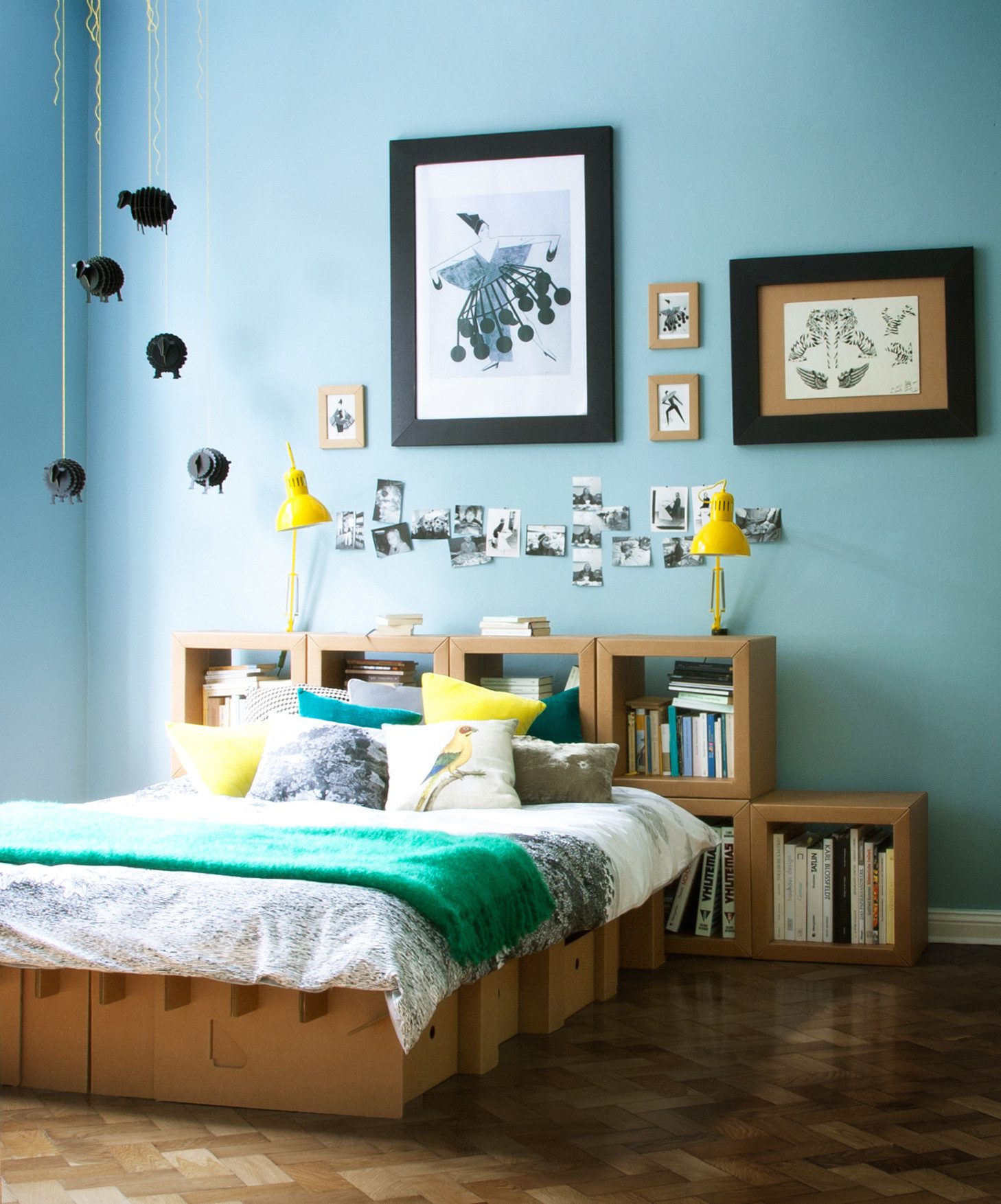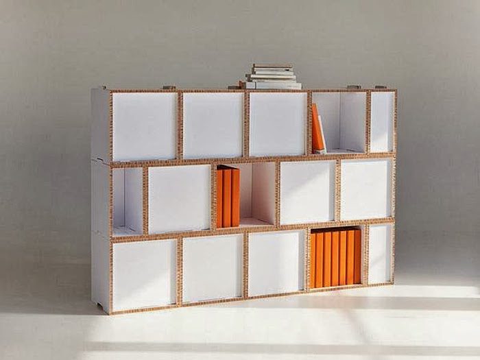 A pesar de estar hechos de cartón, estos módulos cuadrados son muy fuertes y duraderos y se pueden usar para almacenar muchas cosas, desde libros hasta decoraciones, archivos y casi cualquier otra cosa que normalmente pondrías en un estante o en una librería. Se pueden combinar en unidades y vienen en juegos de cuatro. {encontrado en pappmoebelshop }