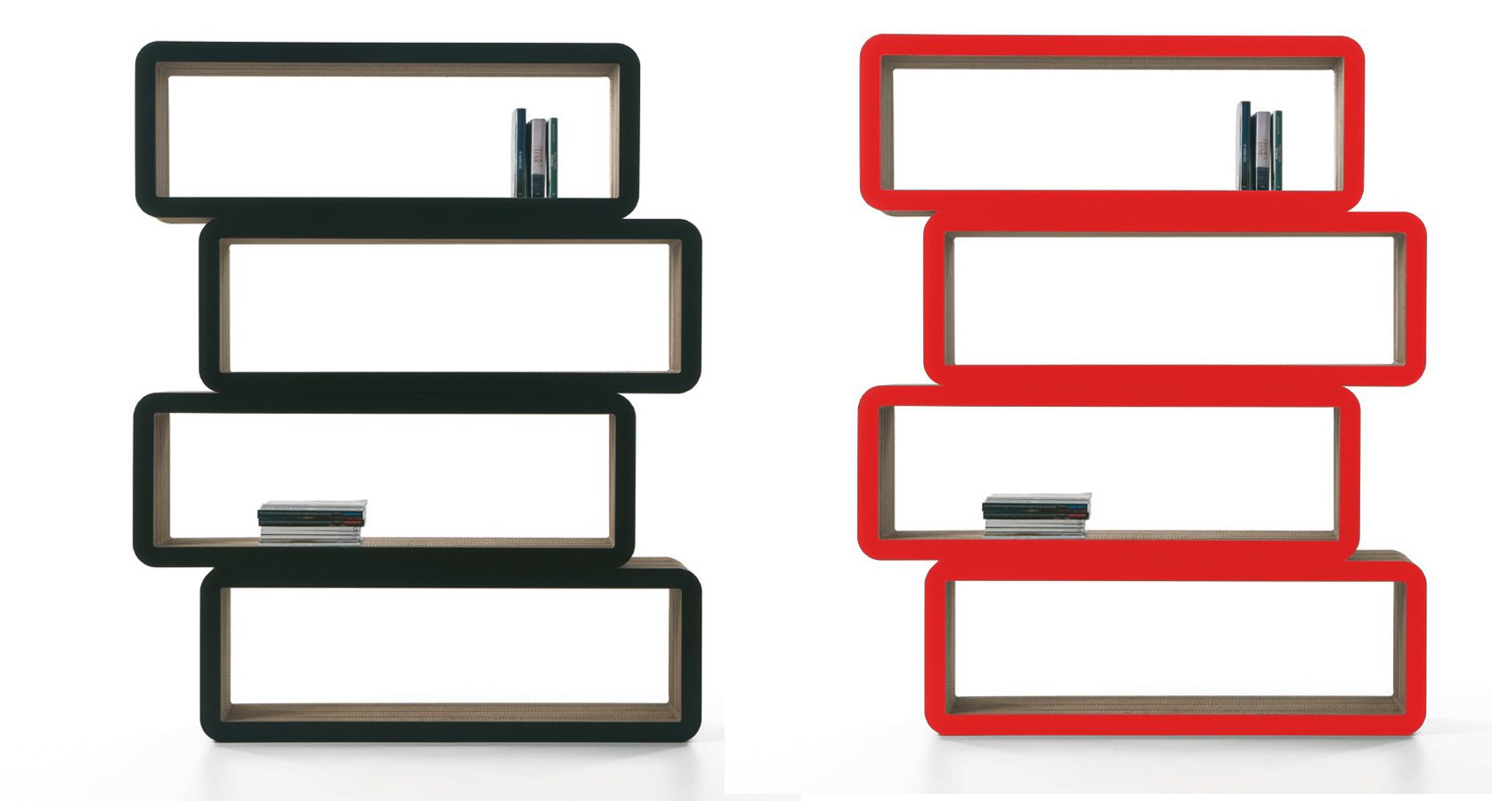 De alguna manera parece correcto almacenar tus libros en estanterías de cartón. Por supuesto, no estamos hablando de estructuras improvisadas, sino de una estantería real con un diseño elegante y elegante. Se llama Damaris y es bastante versátil y modular. Puede apilar dos o tres de estos módulos para crear unidades personalizadas.