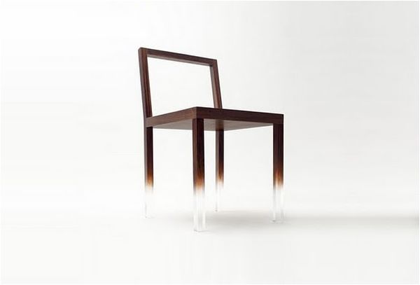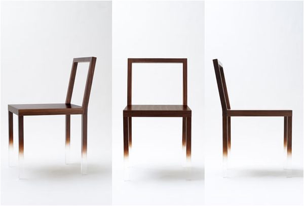 Y ya que empezamos a hablar de sillas, aquí hay otra con un diseño interesante que engaña a la vista. Esta silla fue diseñada por Nendo y en realidad no es muy diferente de cualquier silla común que todos tengamos en nuestros hogares. Lo que hace que este sea especial es la pintura. Tiene acrílico transparente en la base de las patas y el color se desvanece lentamente a pintura color madera hacia la parte superior.